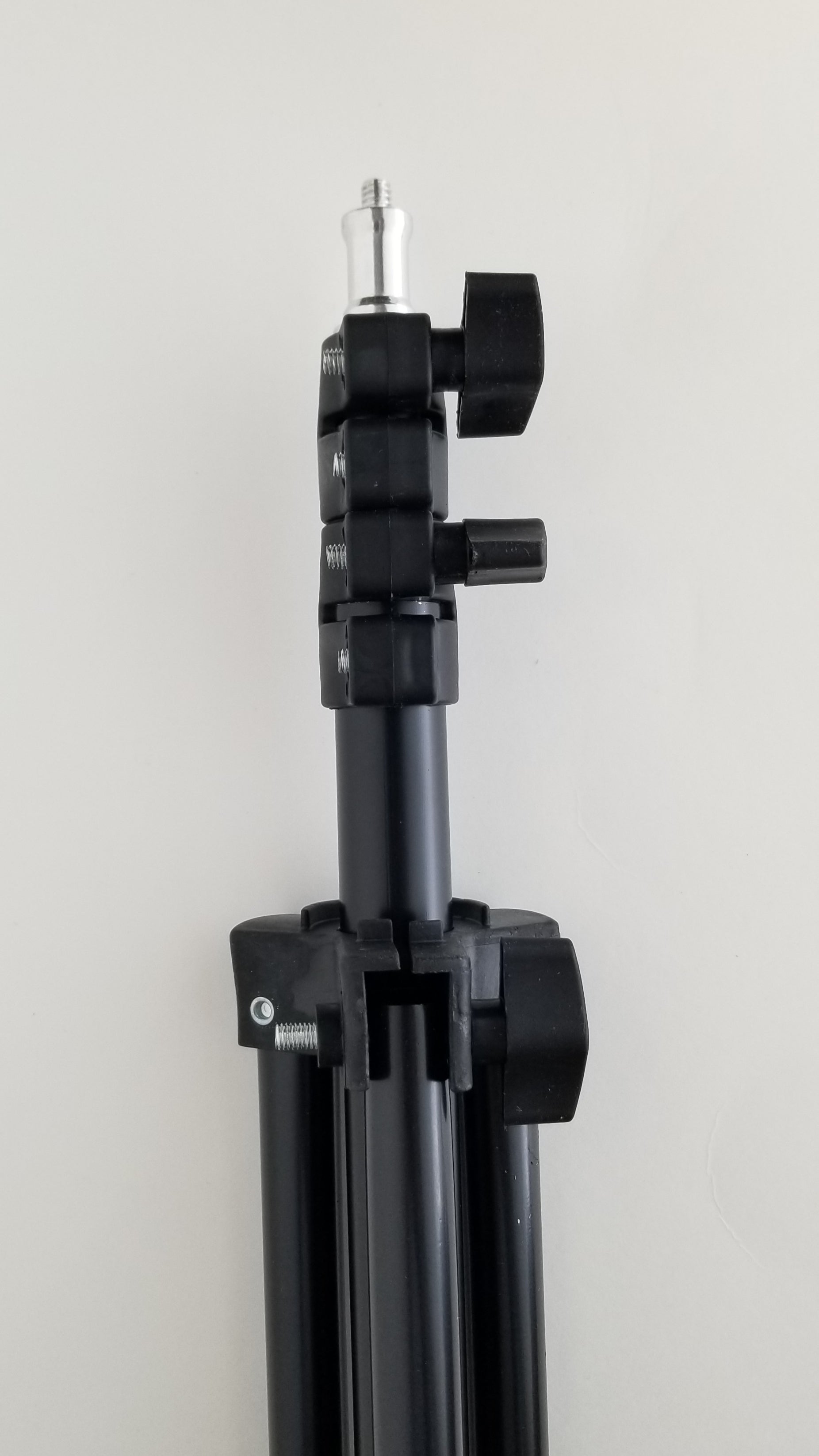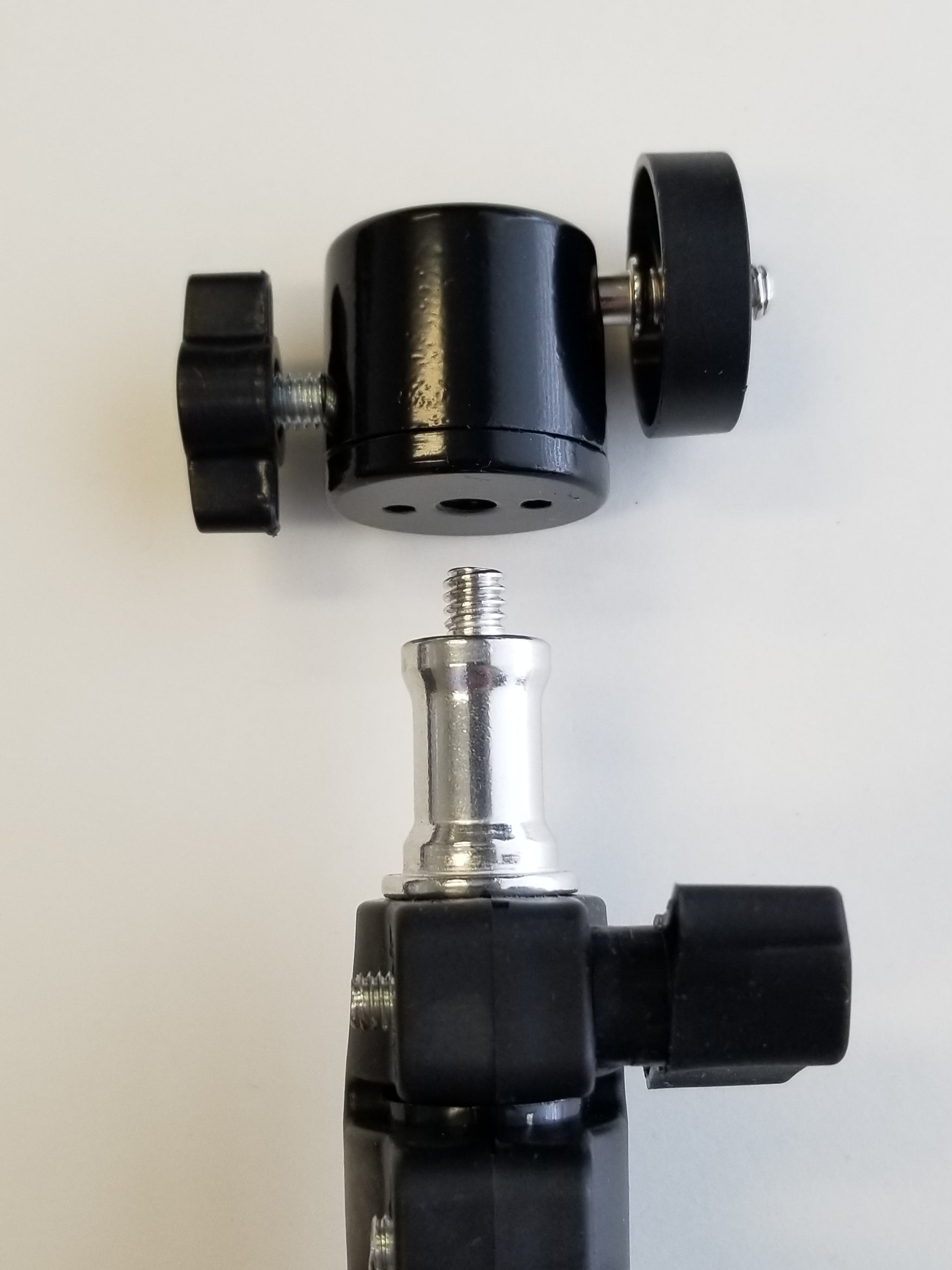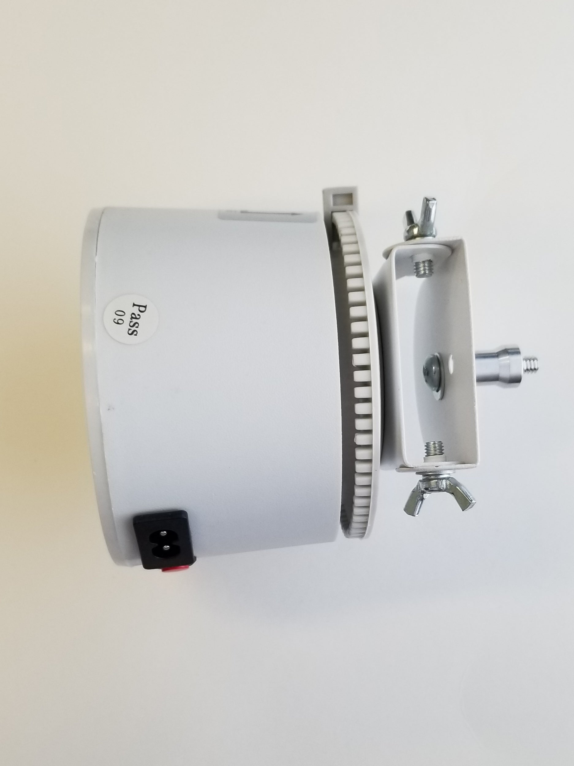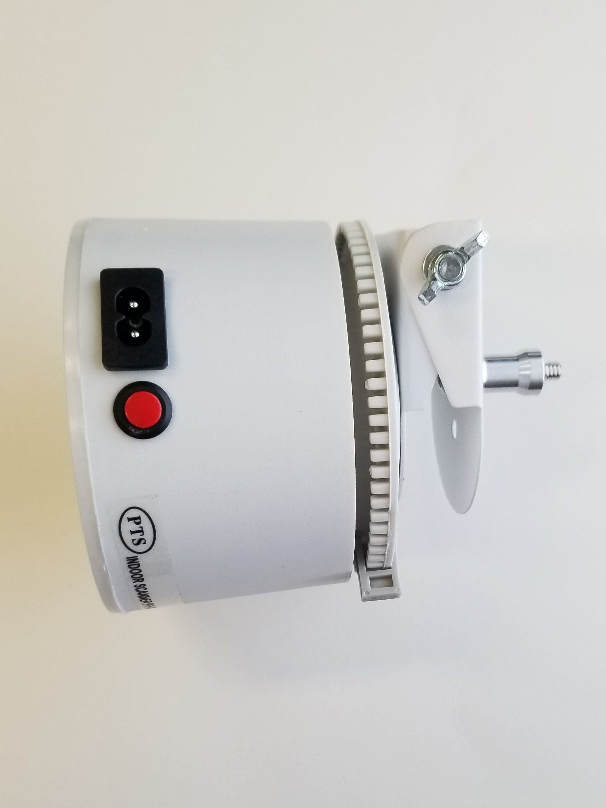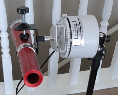 PLEASE NOTE: The white top that rotates the wand operates on 110V. It is also quite heavy, even more so with an attached blower. So when attached to the ball swivel adapter and turned on its side, please position it directly over top of one of the three tripod legs to enhance stability! Also use with great care as it can be tipped over and the blower crystal can be broken.
