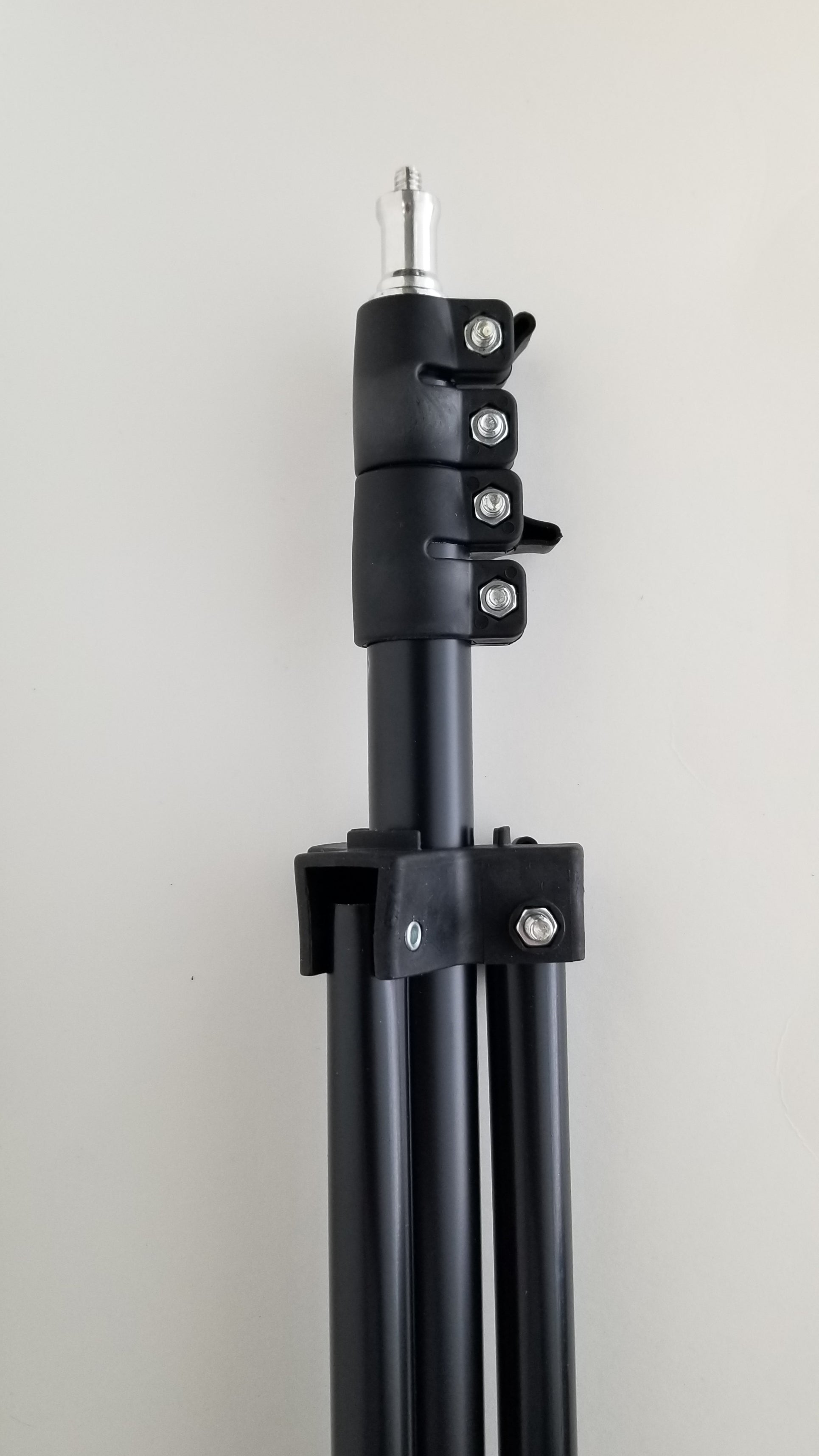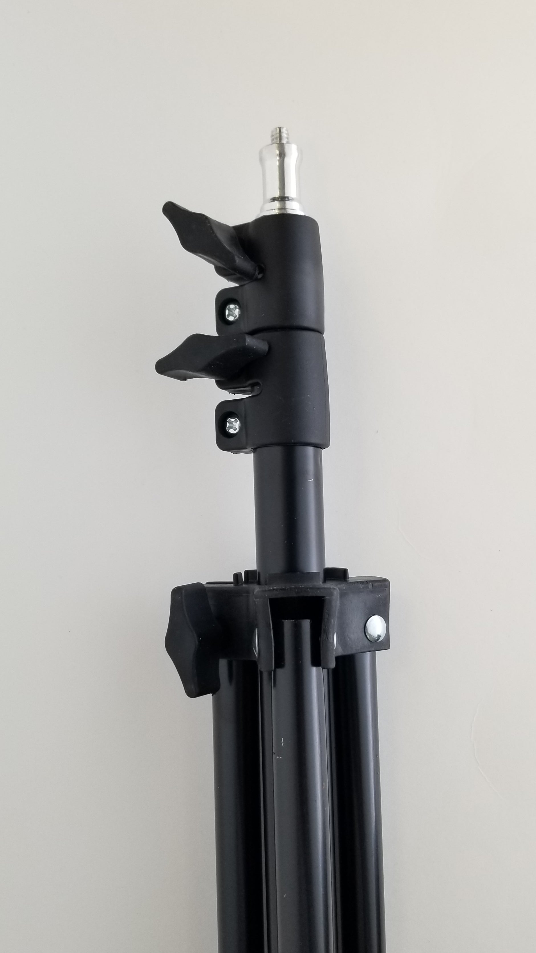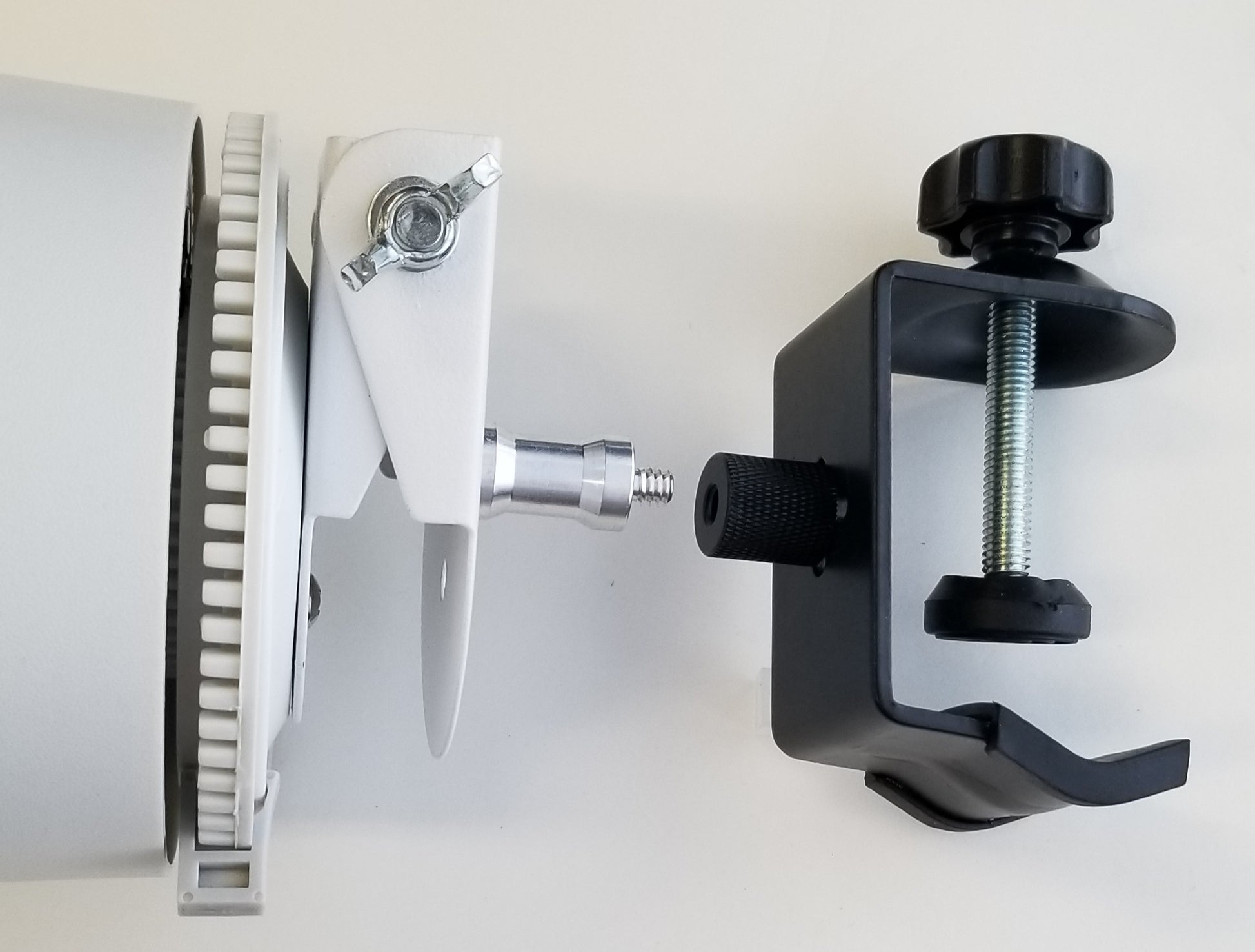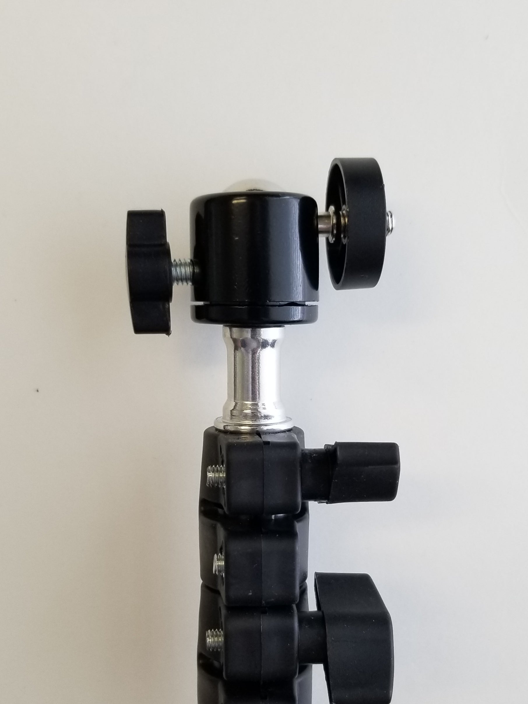 PLEASE NOTE: The white top that rotates the wand operates on 110V. It is also quite heavy, even more so with an attached blower. So when attached to the ball swivel adapter and turned on its side, please position it directly over top of one of the three tripod legs to enhance stability! Also use with great care as it can be tipped over and the blower crystal can be broken.