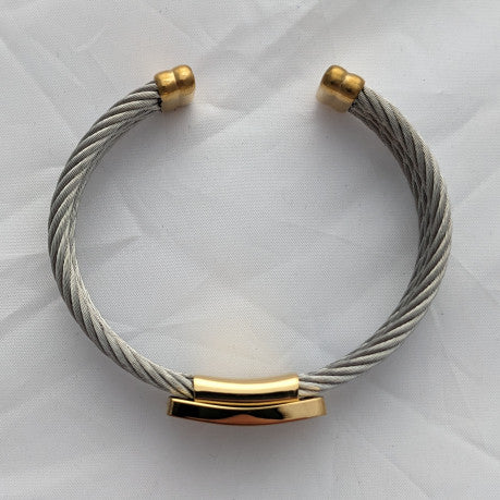 Both Bangles are the same size. Quantum scalar energy has been infused into the special titanium name plate on the top to help energize the body of the wearer.